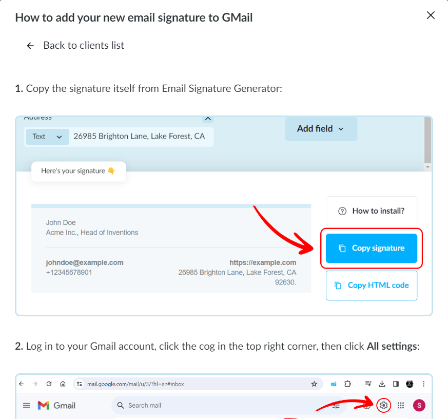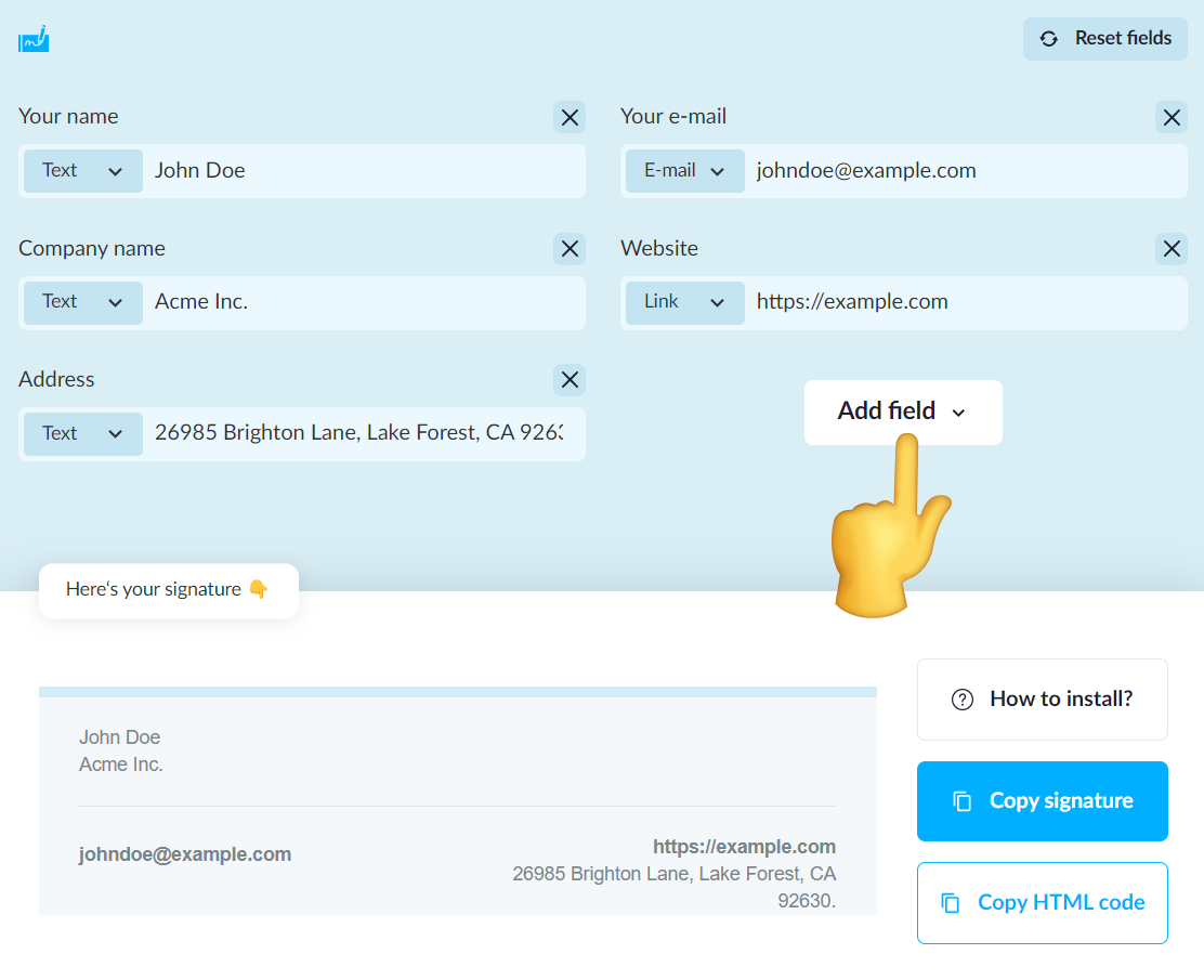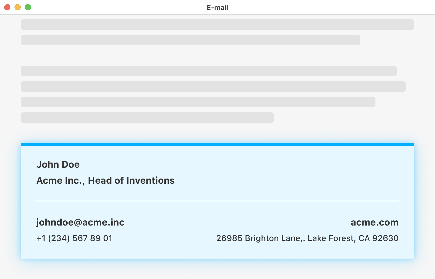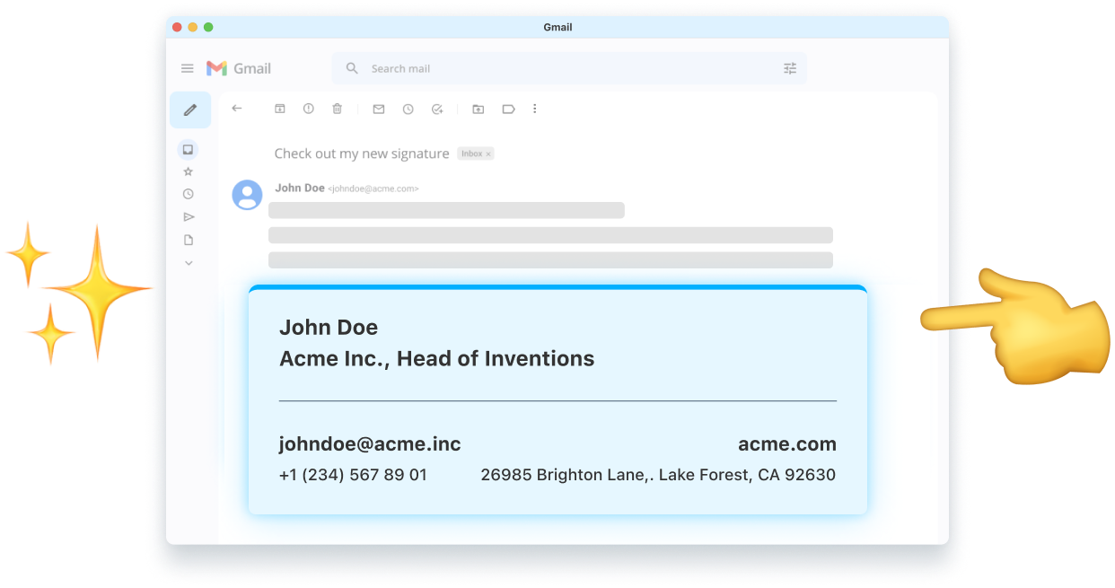 Just install the Chrome extension, set up your info fields, paste the generated signature into an email client – and you're all set!